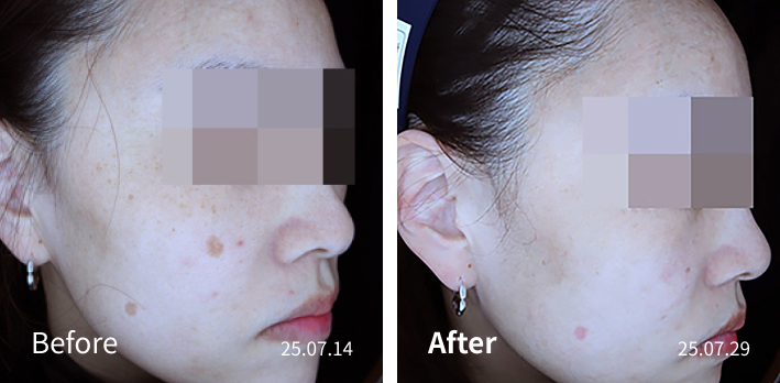 기미, 주근깨, 잡티, 흑자 등 멜라닌 색소를 세밀한 단계로 집중 타겟하여 피부 손상을 최소화하며 치료합니다.